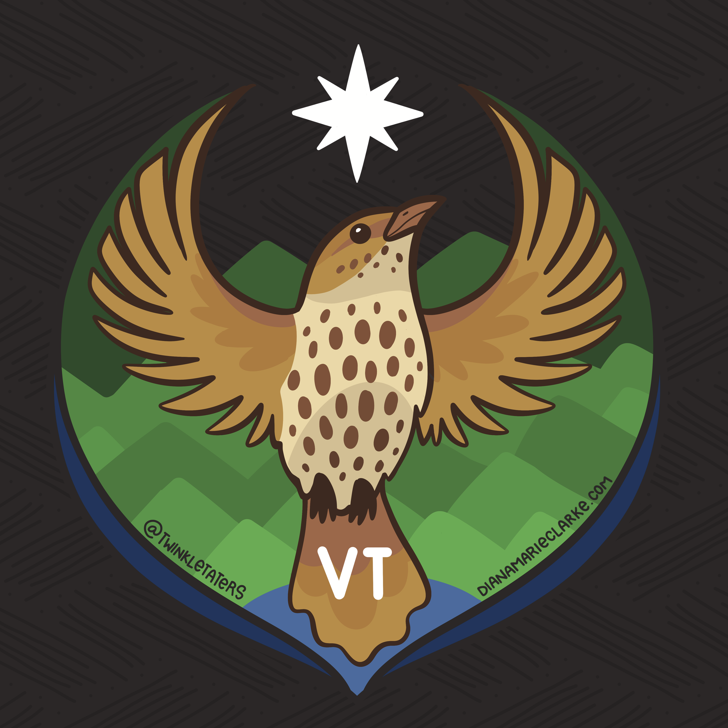 This Rebel Bird was illustrated by me to add our Brave Little State and the state's official bird, the small-but-mighty Hermit Thrush, to the growing movement to stand in solidarity with Minnesota and is an anti-authoritarian symbol to protest federal immigration enforcement operations. The design is based off of the Star Wars Rebel Alliance insignia and a nod to the Mockingjay symbol in The Hunger Games. You may have seen a slew of other states’ rebel bird insignias around social media, many of which are created by generative AI (boo! hiss!), however mine was hand-drawn by me, a Vermonter!, in Procreate.